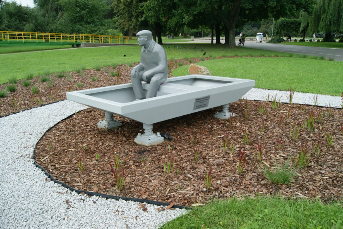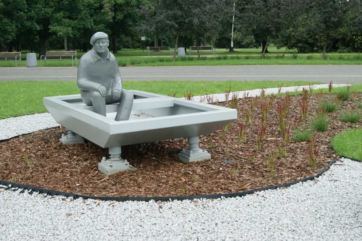 Pomnik postawiony został w lutym 2004 roku, obok kładki dla pieszych i rowerzystów, w miejscu, gdzie przeprawiał mieszkańców swą krypą na drugi brzeg.