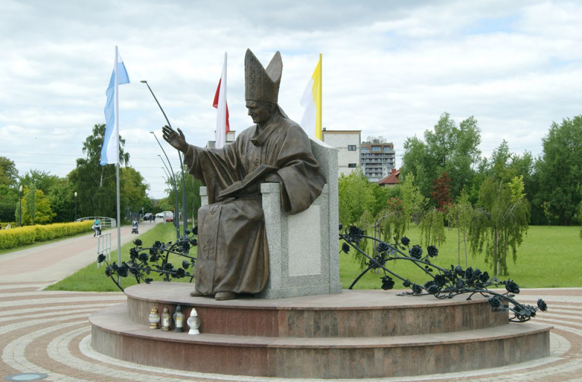 Pomnik Jana Pawła II, który został uroczyście odsłonięty 2 czerwca 2021 r. stoi w centralnym punkcie Parku Papieskiego, w miejscu, gdzie papież w czerwcu 1991 roku spotkał się z wiernymi.