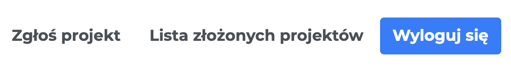 obrazek 2: przyciski zgłaszanie projektu oraz lista złożonych projektów widoczne dla zalogowanych osób