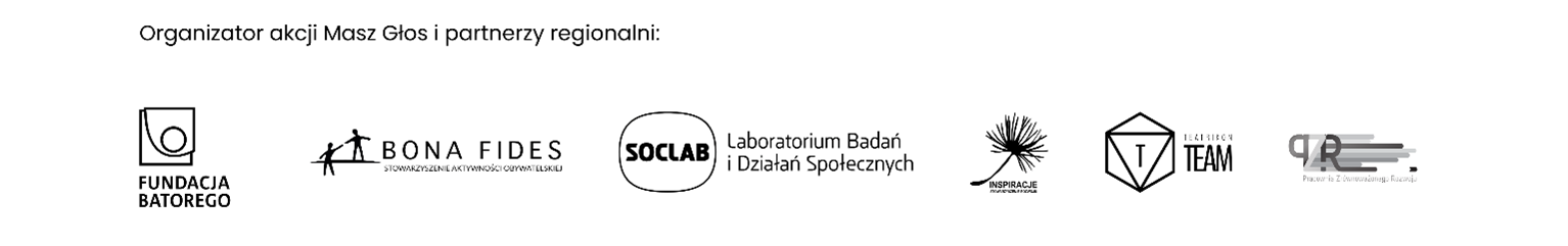 Partnerzy regionalni akcji Masz Głos: Stowarzyszenie Aktywności Obywatelskiej Bona Fides, Fundacja Laboratorium Badań i Działań Społecznych SocLab, Stowarzyszenie Rozwoju „Inspiracje”, Pracownia Zrównoważonego Rozwoju, Fundacja Twórczości, Edukacji i Animacji Młodzieży – „Teatrikon”. Patroni medialni: Onet, Ngo.pl