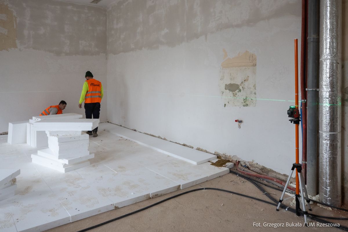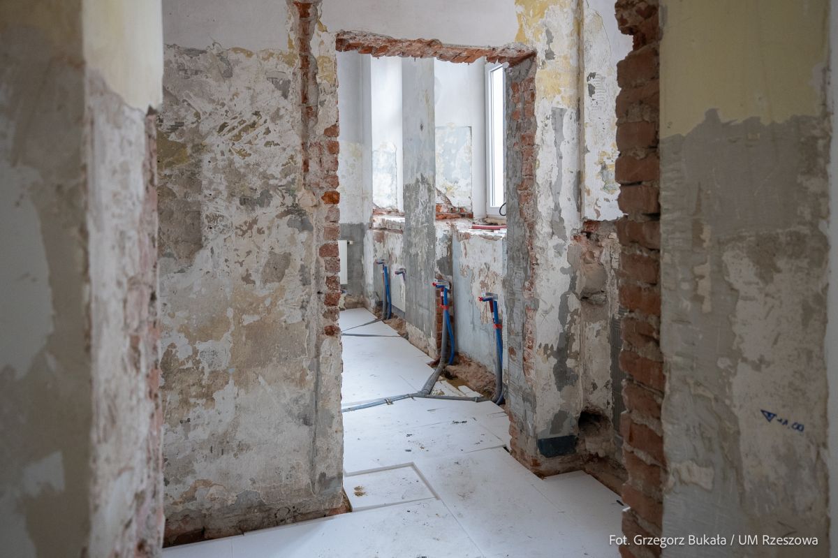 Prace już trwają. Wykonawca zakończył już roboty rozbiórkowe w skrzydle A. Prowadzone są prace przy instalacji centralnego ogrzewania, wodno-kanalizacyjnej i elektrycznej oraz przy odtwarzaniu tynków. Inwestycja zakończy się w tym roku.