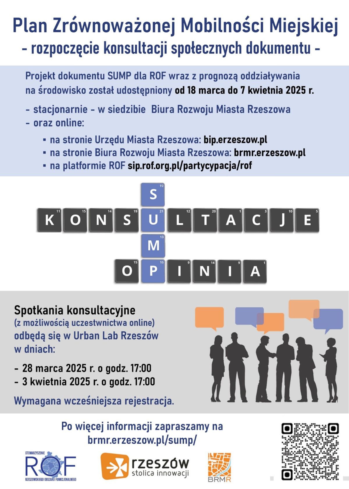 W związku z upublicznieniem projektu dokumentu SUMP dla ROF wraz z prognozą oddziaływania na środowisko serdecznie zapraszamy do udziału w spotkaniach konsultacyjnych.