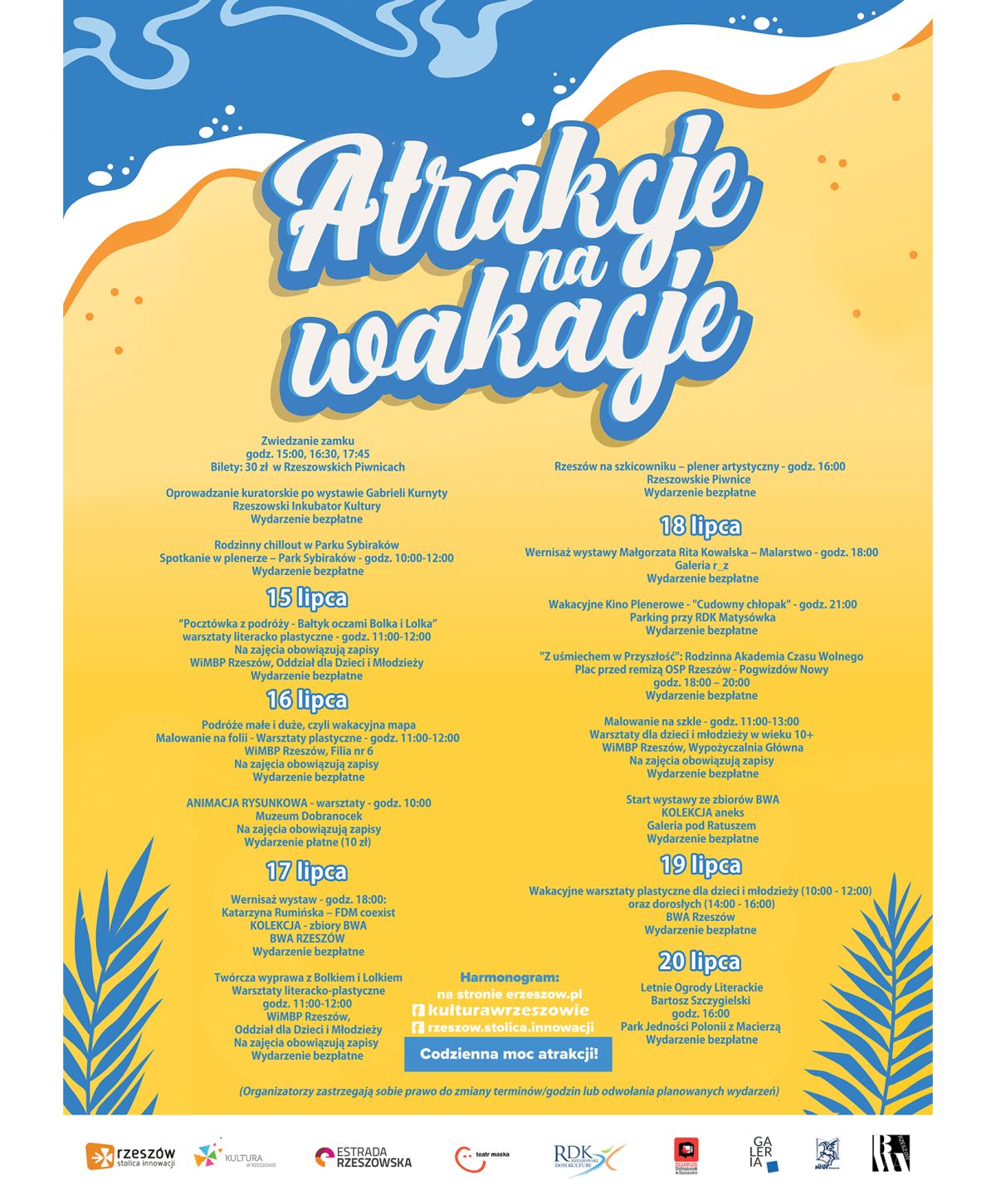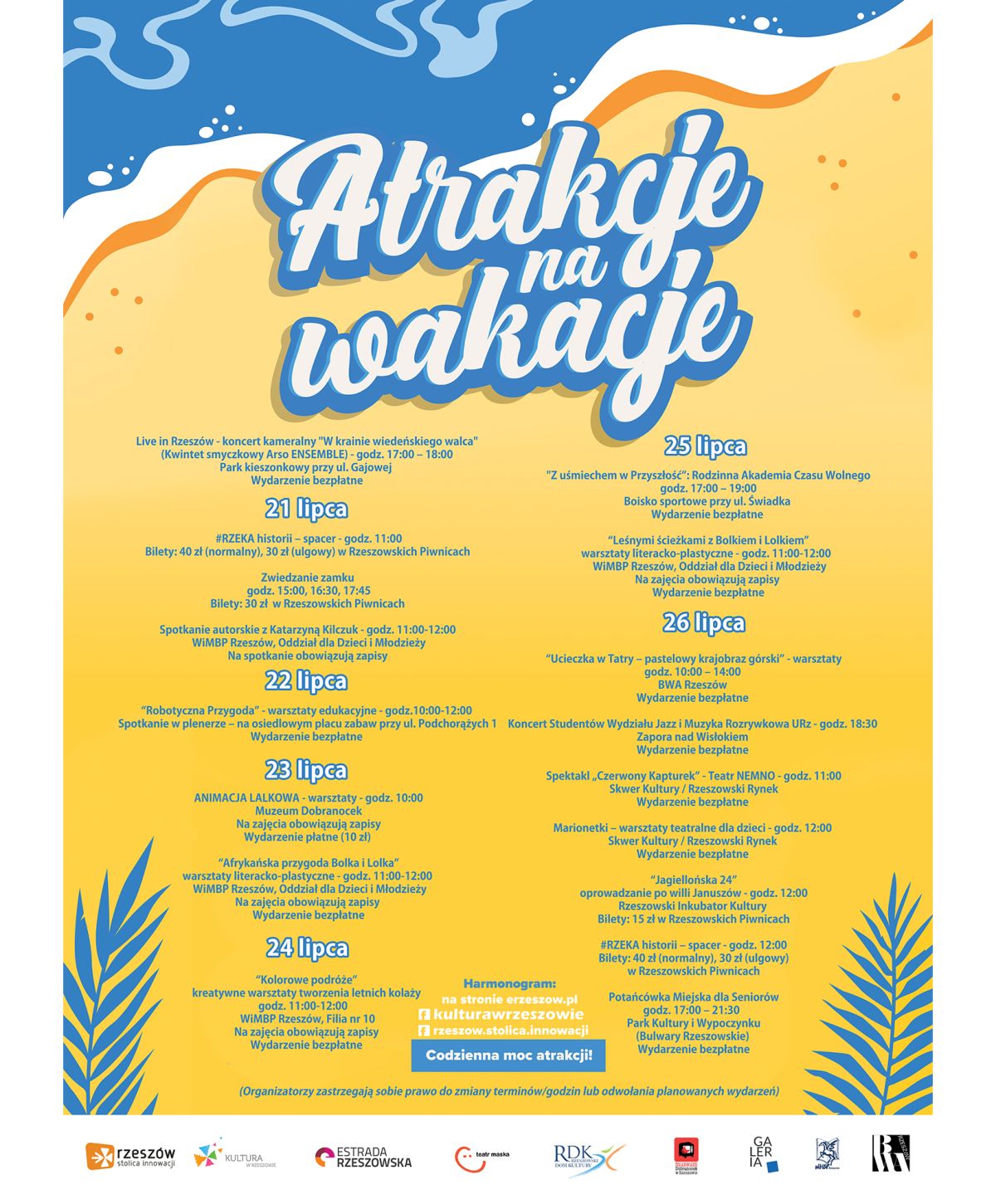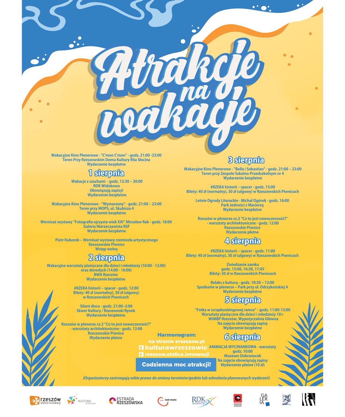 Pełny program „Atrakcji na wakacje” dostępny będzie na stronie internetowej urzędu miasta www.erzeszow.pl. Zachęcamy również do śledzenia mediów społecznościowych urzędu miasta oraz miejskich wydziałów i jednostek.