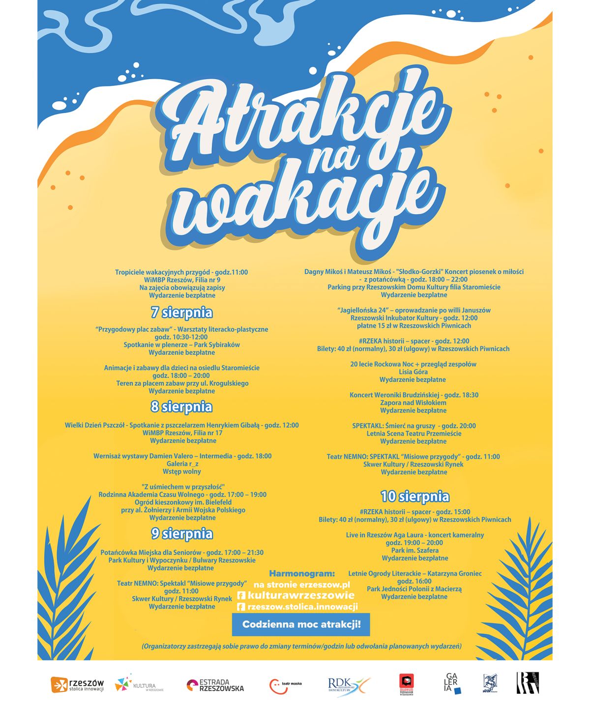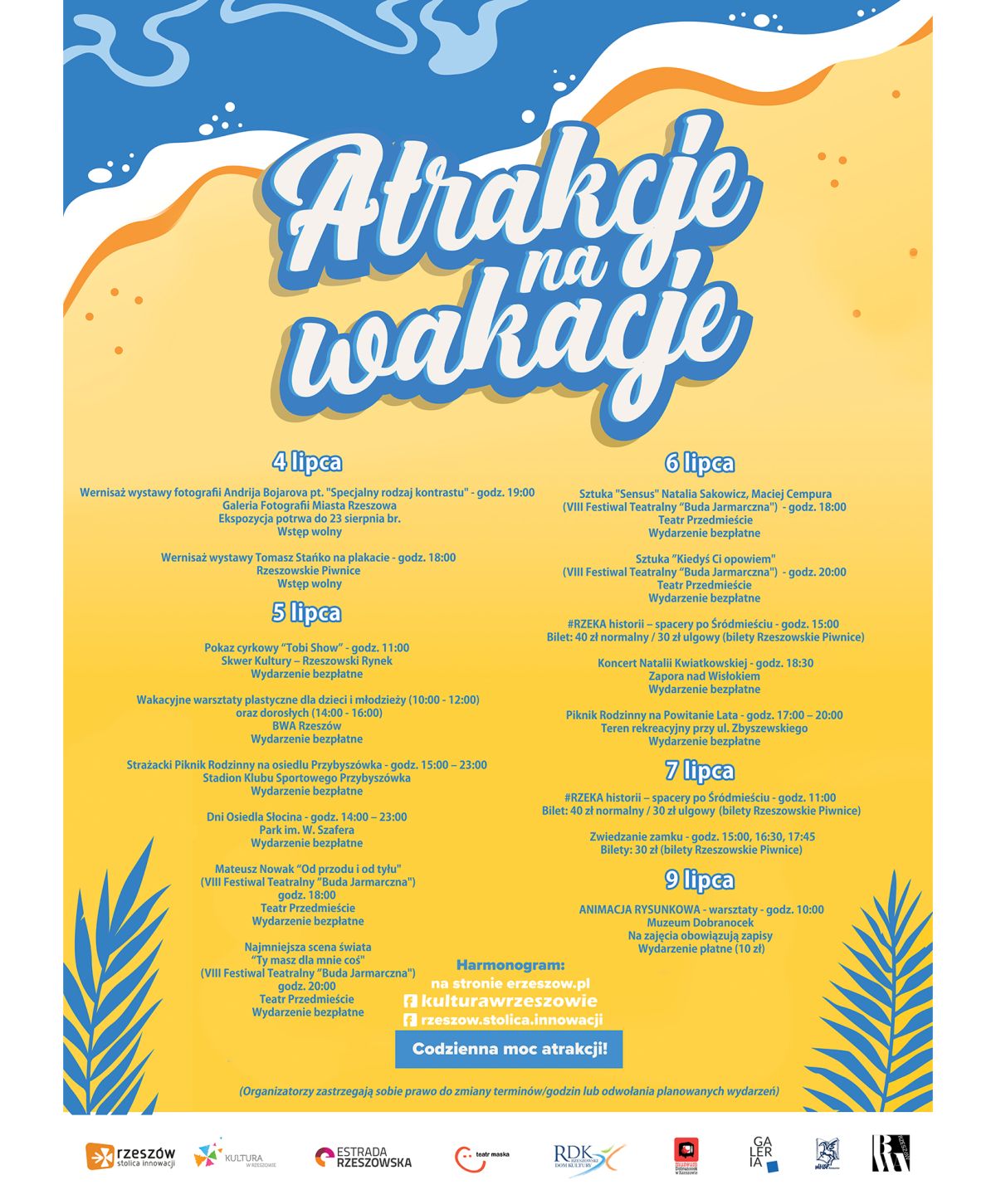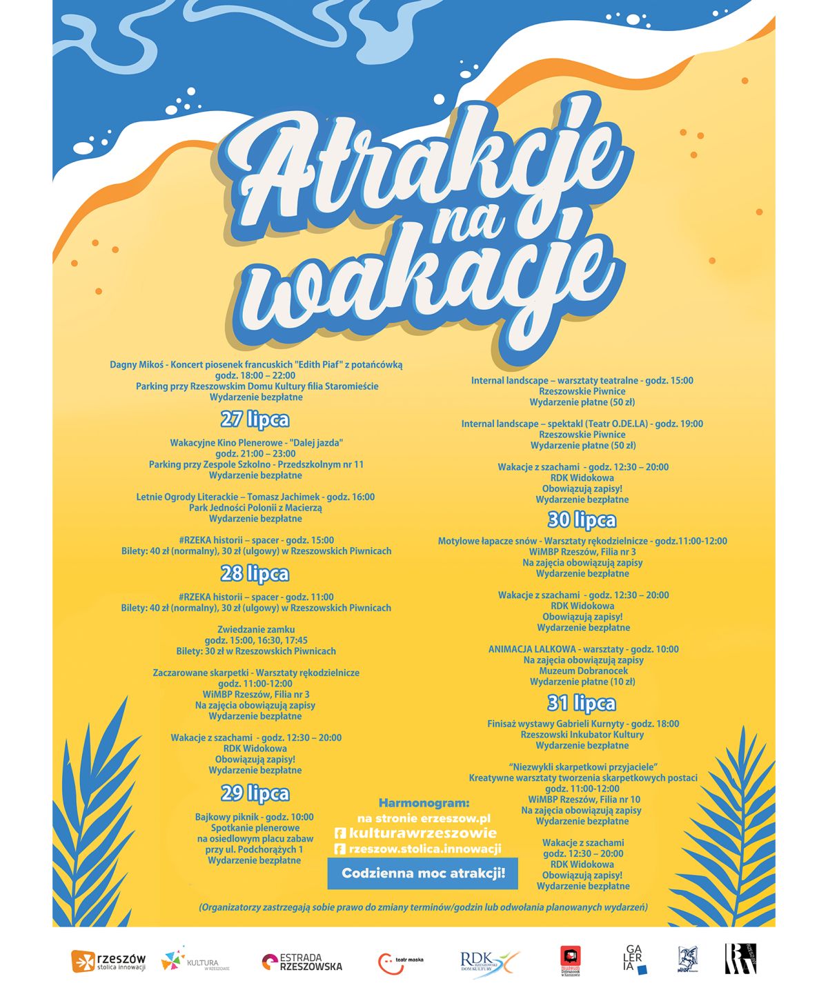 Pełny program „Atrakcji na wakacje” dostępny będzie na stronie internetowej urzędu miasta www.erzeszow.pl. Zachęcamy również do śledzenia mediów społecznościowych urzędu miasta oraz miejskich wydziałów i jednostek.