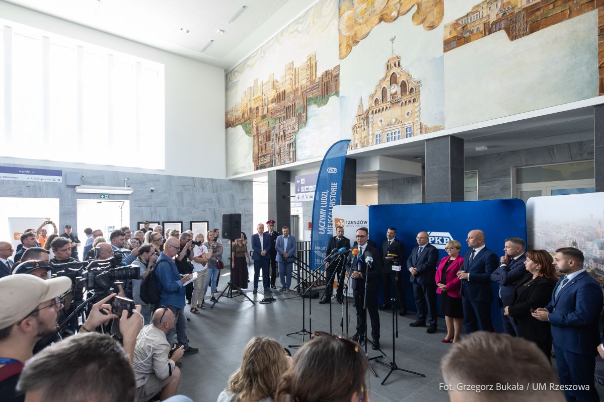 Uroczystość oficjalnego oddania do użytku odnowionego i zmodernizowanego kolejowego Dworca Głównego w Rzeszowie odbyła się w czwartek po południu. – Wiem, że na ten moment pasażerowie kolei czekali długo. Cieszę się, że dziś następuje ta upragniona chwila. Chciałbym bardzo serdecznie podziękować władzom samorządowym – Panu Prezydentowi Konradowi Fijołkowi za współpracę. Wiemy, że modernizacja tego budynku jest wkomponowana w szerszą inwestycję, która dotyczyła uporządkowania, przebudowania miejskiego terenu, który otacza dworzec – mówił podczas uroczystości w Rzeszowie Dariusz Klimczak, Minister Infrastruktury.