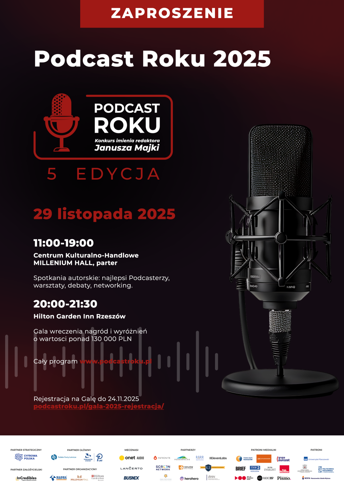 Dokładnie za dwa tygodnie,29 listopada, spotykamy się w Rzeszowie na 5. edycji Konkursu im. Redaktora Janusza Majki - Podcast Roku 2025.