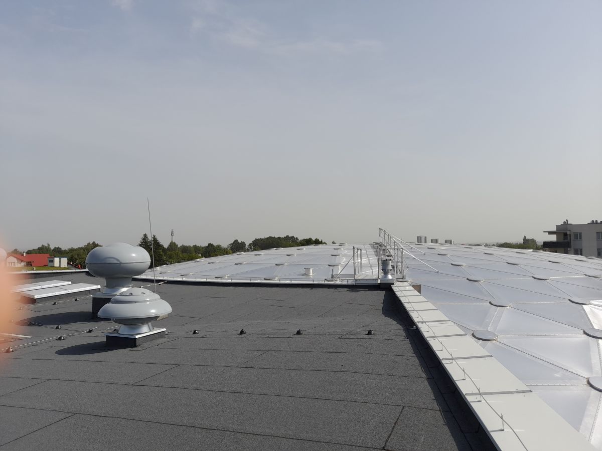 - Obiekt jest wyposażony w instalację fotowoltaiczną o łącznej mocy nieprzekraczającej 50,72 kWp. Instalacja fotowoltaiczna jest połączona z instalacją elektryczną obiektu. Instalację fotowoltaiczną stanowią m. in.: moduły fotowoltaiczne umieszczone na elewacji, falowniki fotowoltaiczne, rozdzielnice fotowoltaiczne prądu stałego i prądu zmiennego oraz syatem zarządzania energią.