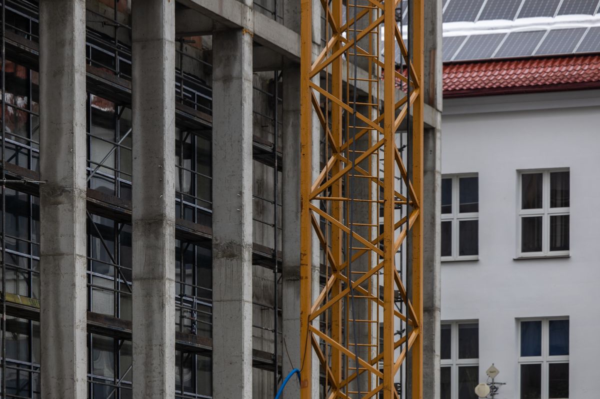 Na budowie nowej hali sportowej przy Zespole Szkół nr 1 w Rzeszowie trwa montaż dachu.