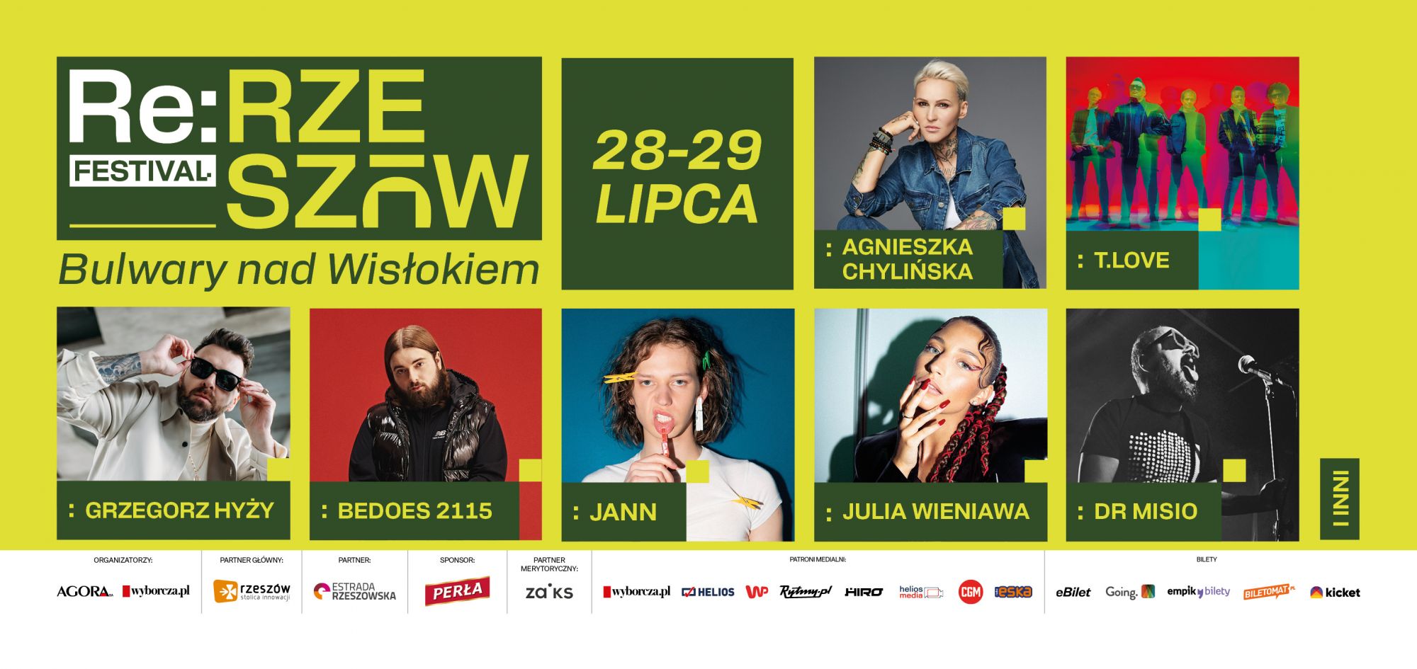Druga edycja RE: Rzeszów Festivalu 28 i 29 lipca na Bulwarach nad Wisłokiem. Szczegółowy program na profilu festiwalu na Facebooku https://www.facebook.com/ReRzeszowFestival i Instagramie https://www.instagram.com/re_rzeszowfestival/.