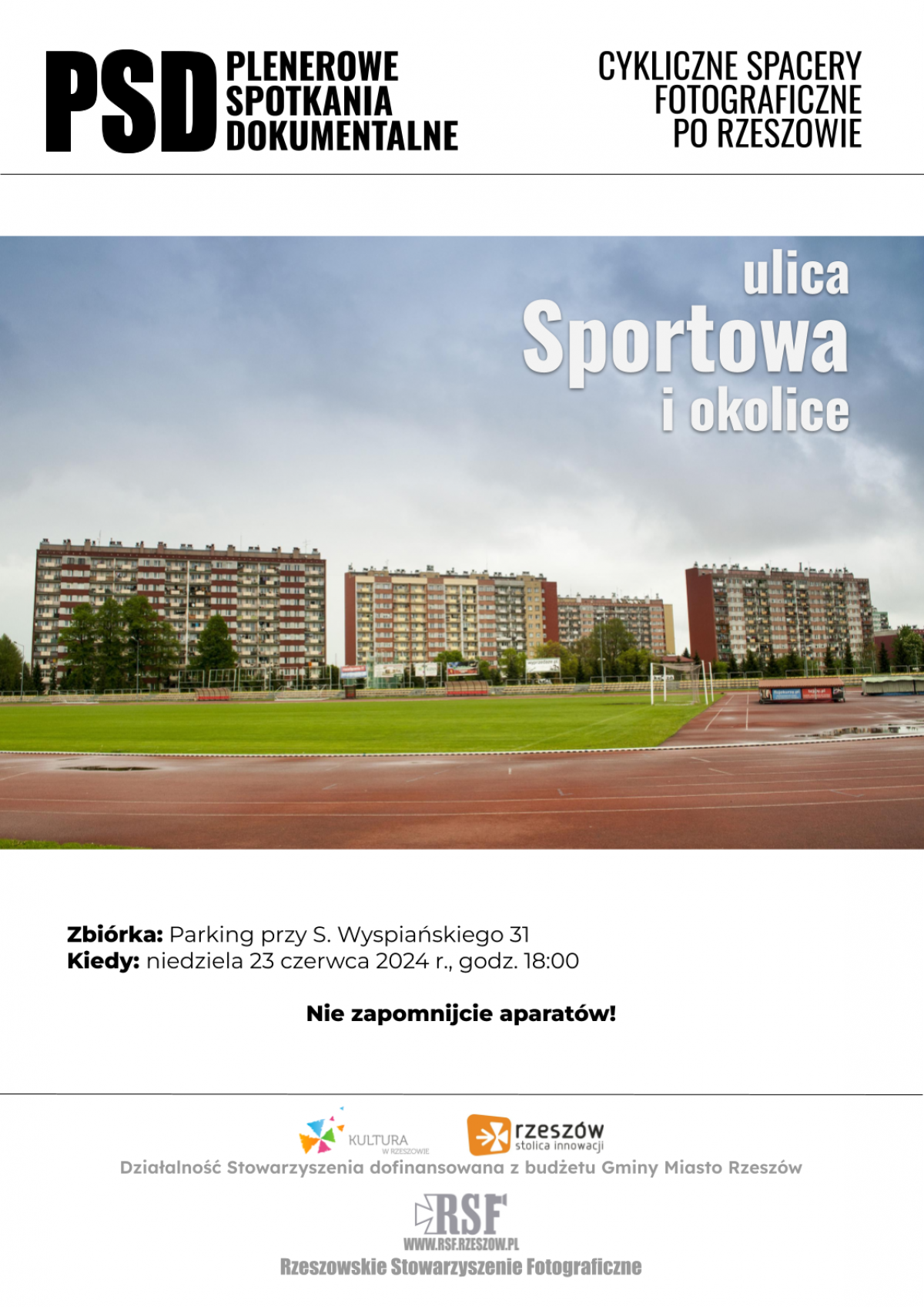 W związku z planowaną budową Podkarpackiego Centrum Lekkiej Atletyki, naszym celem będą w czerwcu okolice ulicy Sportowej. Zapraszamy wszystkich chętnych do spacerowania z aparatami w naszym towarzystwie.