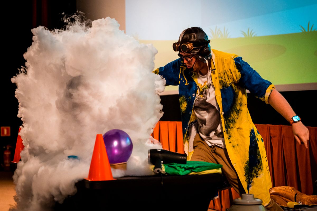 Atrakcje w holu i na zewnątrz kina będą w godzinach 9:45 – 10:30. Pokazy naukowe w sali kinowej w godzinach 10:30 – 10:50.