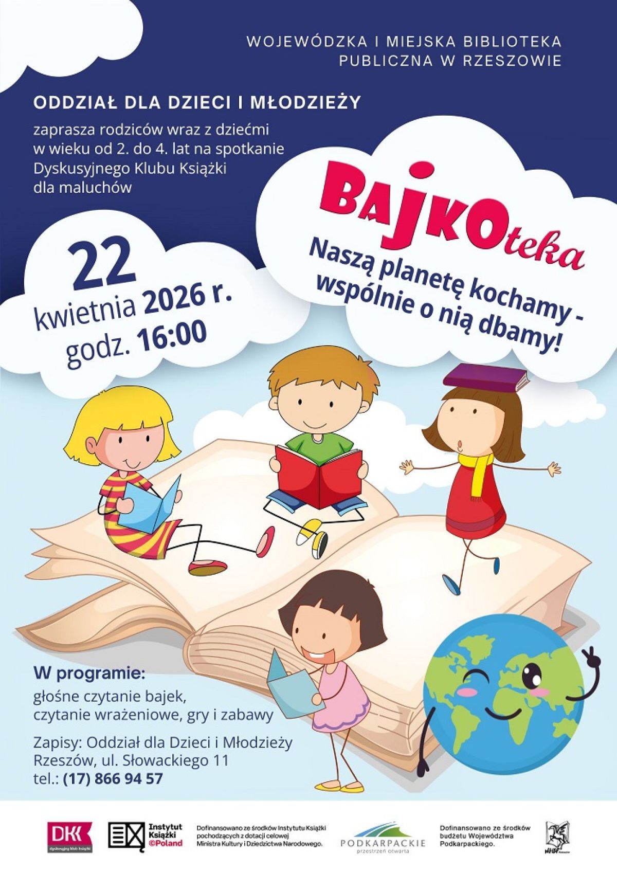 Wojewódzka i Miejska Biblioteka Publiczna w Rzeszowie zaprasza rodziców wraz z dziećmi w wieku od 2. do 4. lat na spotkanie Dyskusyjnego Klubu Książki dla maluchów – „BAJKOTEKA”