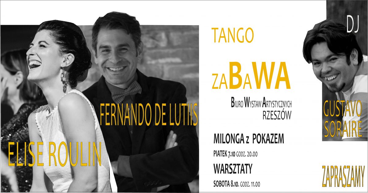 7 października w naszym rzeszowskim BWA odbędzie się Milonga z pokazem Mistrzów Tanga Argentyńskiego Elise Roulin oraz Fernando de Lutiis…– to od godziny 20.00.