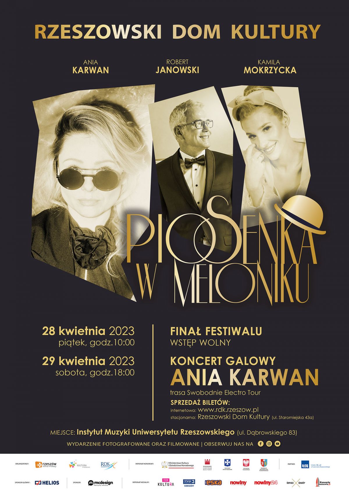 - Ogólnopolski Festiwal Piosenki Aktorskiej, Filmowej i Musicalowej „Piosenka w Meloniku” jest organizowany przez Rzeszowski Dom Kultury pod Honorowym Patronatem Ministerstwa Kultury i Dziedzictwa Narodowego, Narodowego Centrum Kultury, Prezydenta Miasta Rzeszowa, Wojewody Podkarpackiego oraz Marszałka Województwa Podkarpackiego. Realizację wydarzenia wspierają: Sponsor Główny – Kino Helios, Sponsor – MCDESIGN oraz Partner – Instytut Muzyki Uniwersytetu Rzeszowskiego.