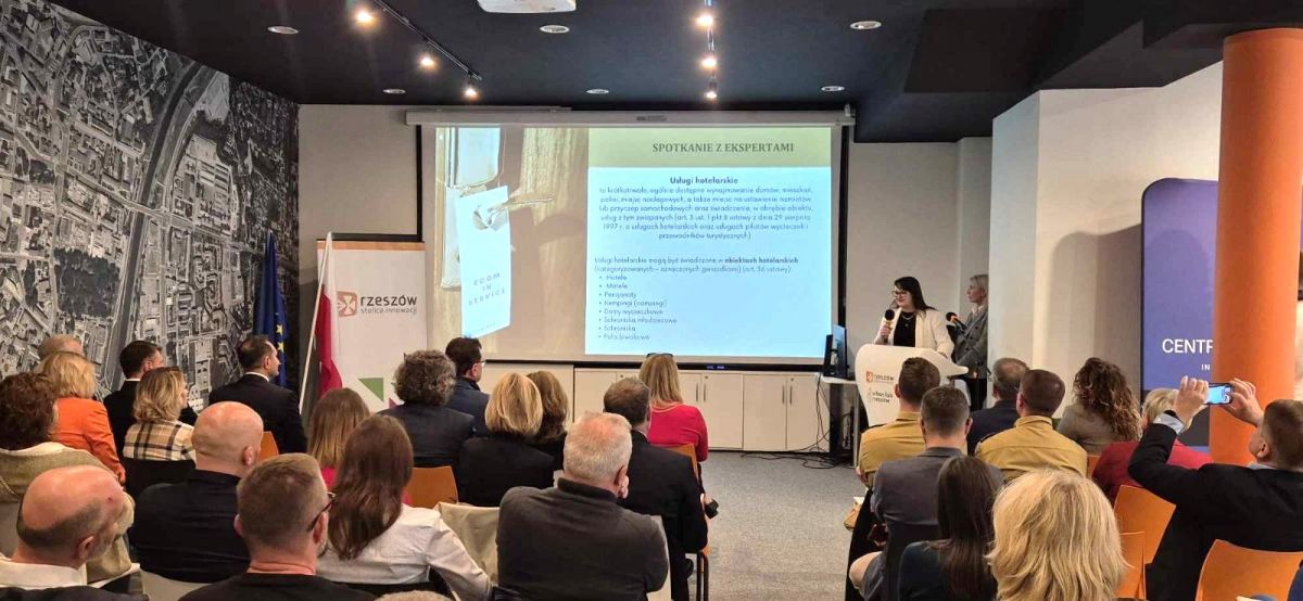 W dniu 2 października 2024 r. w Centrum Innowacji Miejskich Urban Lab Rzeszów odbyło się spotkanie informacyjne dla przedsiębiorców, przedstawicieli rzeszowskich biur rachunkowych obsługujących przedsiębiorców, przedstawicieli biur nieruchomości na temat procedur związanych z wynajmem krótkoterminowym w tzw. innych obiektach świadczących usługi hotelarskie.