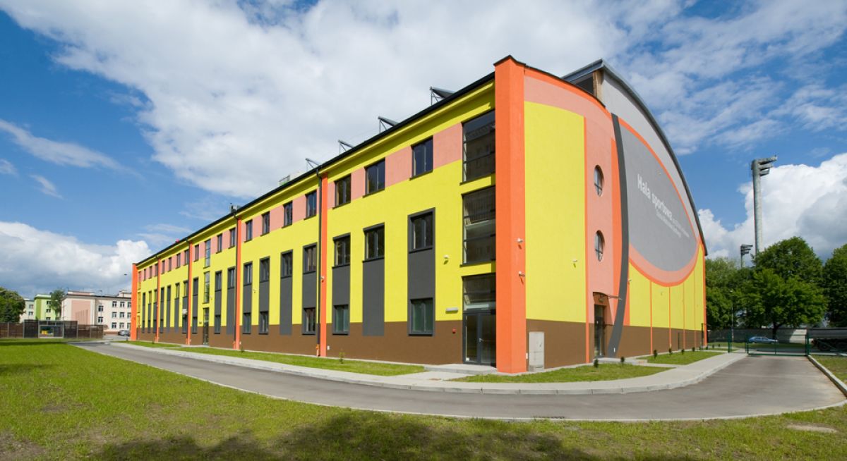 Trzykondygnacyjna hala sportowa o wymiarach 65 m x 45 m mieści wielofunkcyjną salę sportową, trzy boiska treningowe do koszykówki i siatkówki, sale lekcyjne, salę fitness i aerobiku oraz siłownię, a także magazyny sprzętu, kabinę komentatorską, pokoje sędziowskie, pokój nauczycielski, pomieszczenia gospodarcze i techniczne, węzły szatniowo-sanitarne oraz trybuny przeznaczone dla 345 widzów. Cały obiekt przystosowany jest dla osób niepełnosprawnych. Na zewnątrz obiektu są dwa wielofunkcyjne boiska oraz 100-metrowa bieżnia lekkoatletyczna.