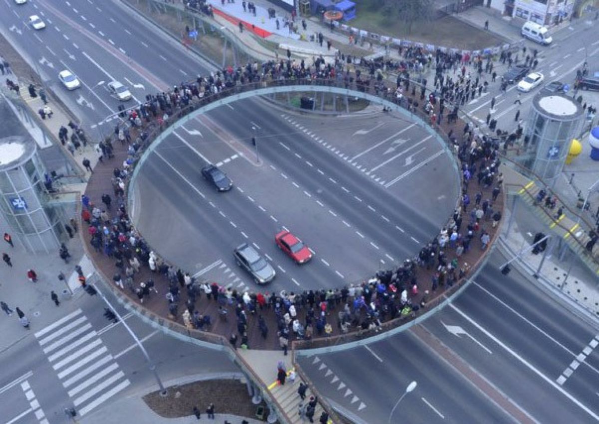 „Ruch pieszych to wielobarwność poruszania się każdego z nas. Poruszanie się to dynamika, to wdzięk”. W kolejnej części przedstawienia kładką zawładnęły piękne kobiety. „Czy w Rzeszowie możliwe jest przemieszczanie się człowieka bez użycia skrzydeł?” – pytał głos lektora. Najwyraźniej tak. Modelki prezentowały kolekcję rzeszowskiej projektantki Justyny Półtorak: „Kocham Rzeszów”. Uwagę przyciągały skrzydła na ich plecach. Tak jak kładka łączy piękno architektury z powszedniością życia codziennego, tak w pokazie mody połączono piękne, eleganckie tkaniny z niekonwencjonalnymi, ekologicznymi materiałami.