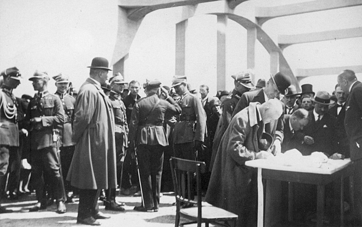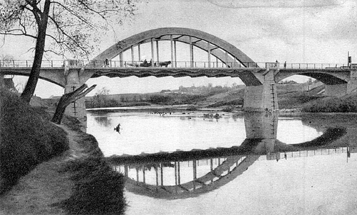 Należy jeszcze koniecznie wspomnieć o jednym moście odgrywającym ogromnie ważną rolę w dziejach komunikowania się Rzeszowa ze światem. W latach 1856 – 1861 wybudowano linię kolejową im. Arcyksięcia Karola Ludwika łączącą Kraków ze Lwowem. Wybudowano także żelazny most kolejowy na Wisłoku. Oba te mosty wysadzili 19 maja 1915 roku wycofujący się z miasta Rosjanie. Wkraczające wojska austriackie i niemieckie przystąpiły szybko, wszak była wojna, do ich odbudowy. Początkowo saperzy niemieccy zbudowali dla potrzeb transportu kołowego most pontonowy, a później drewniany. Po odzyskaniu niepodległości most ten rozebrano, a w jego miejsce wybudowano żelbetowy most łukowy projektu inż. Skoczyńskiego. Jego poświęcenie nastąpiło 21 maja 1928 roku z udziałem ówczesnego premiera Jana Skucińskiego, gen. Andrzeja Galicy, starosty dra. Artura Fridricha i oficerów z Garnizonu Rzeszowskiego.
