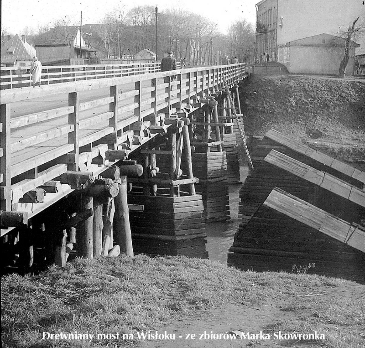 Ale powróćmy na ulicę Lwowską, do naszego mostu. Wycofujące się we wrześniu 1939 roku wojsko polskie próbowało go wysadzić, uszkodzona została tylko jezdnia. Niemcy uszkodzenie łatwo naprawili dodając dodatkowy drewniany filar i tak most ten funkcjonował do 1 sierpnia 1944 roku, kiedy to wycofujące się niemieckie oddziały okupacyjne wysadziły mosty kolejowy i drogowy. Ponieważ komunikacja musiała zostać utrzymana, saperzy sowieccy zbudowali mosty prowizoryczne. Most kolejowy odbudowano bardzo szybko w dotychczasowym kształcie, natomiast w 1946 roku Rosjanie zbudowali solidny drewniany most, oparty na trzech dotychczasowych filarach, które ocalały. Częściowemu uszkodzeniu uległ tylko filar środkowy. Służył on aż do wybudowania nowego w 1962 r.