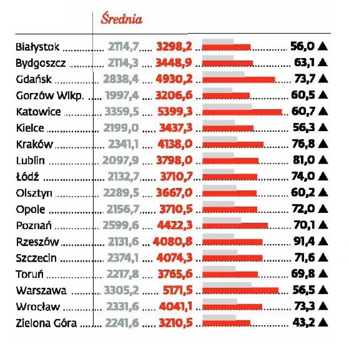Dziennik Gazeta Prawna przygotował ranking wysokości przeciętnego miesięcznego wynagrodzenia w sektorze przedsiębiorstw w Polsce. W ostatniej dekadzie wśród miast wojewódzkich najbardziej wzrosły płace w przedsiębiorstwach Rzeszowa o ponad 91% w ciągu 10 lat.