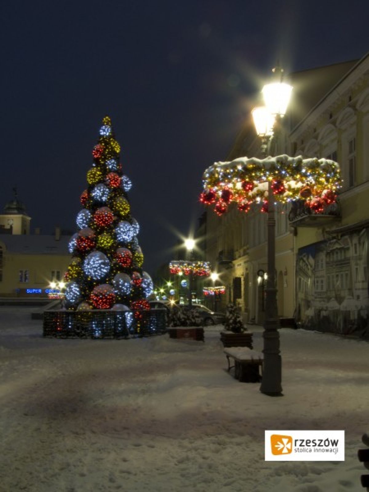 - oświetlenie fontanny wodnej i iluminację Placu Farnego w Rzeszowie,