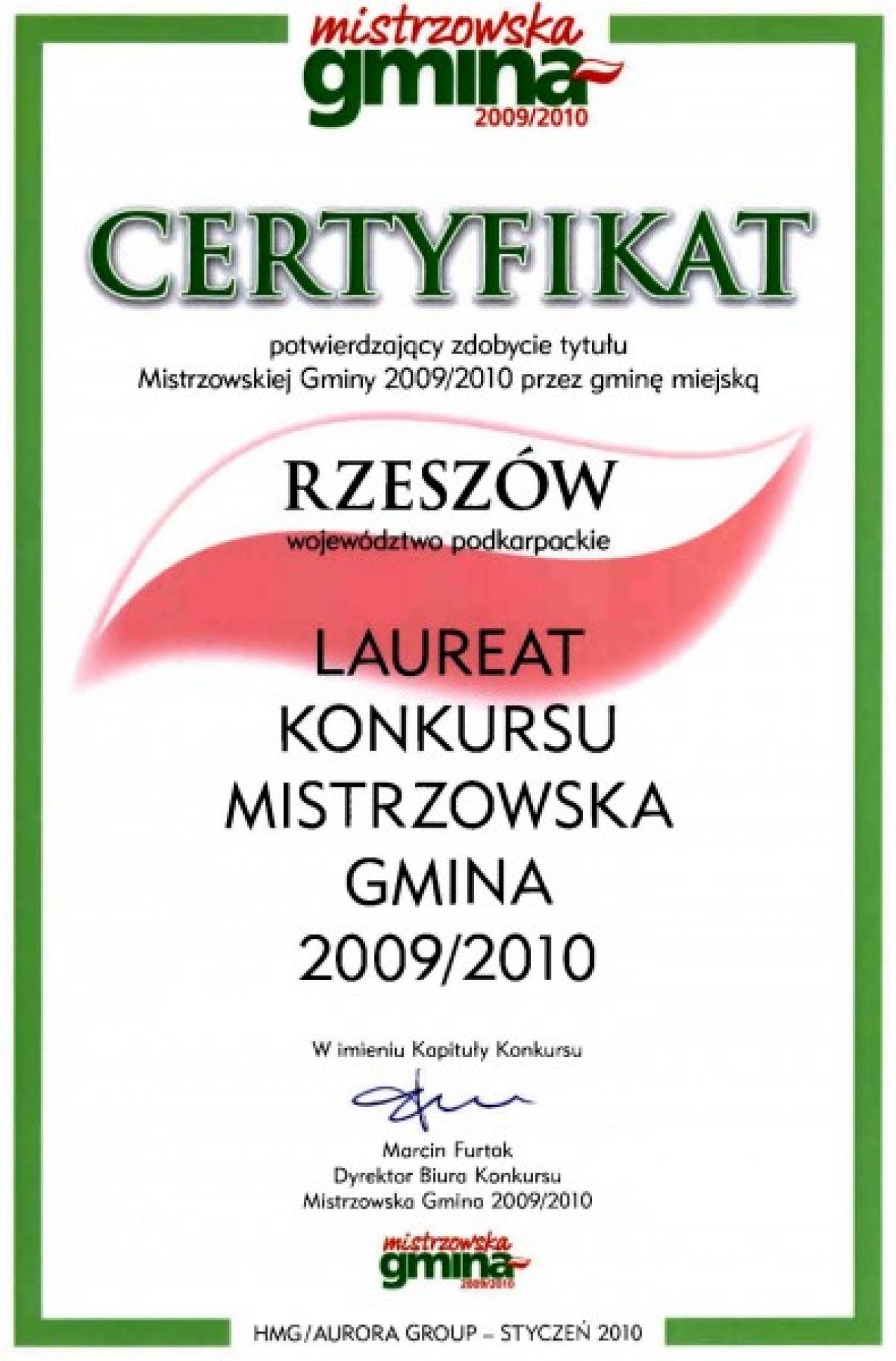 Gmina Miasto Rzeszów zdobyła tytuł oraz statuetkę „Mistrzowska Gmina 2009/2010” w konkursie, którego celem było wybranie najlepszych, najskuteczniej działających gmin samorządu terytorialnego w Polsce.