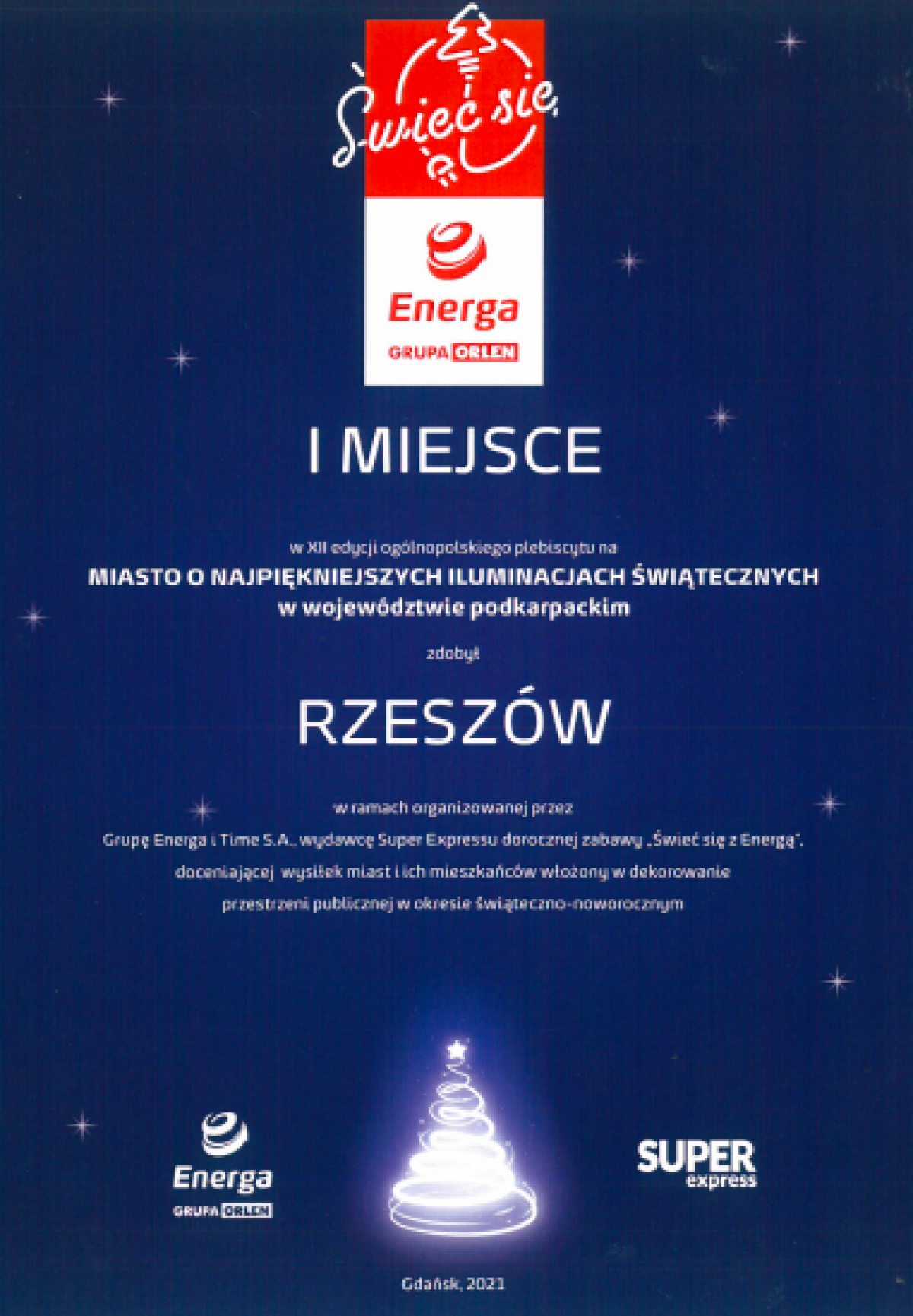 W XII edycji ogólnopolskiego plebiscytu ŚWIEĆ SIĘ - Rzeszów został wybrany najpiękniej udekorowany iluminacjami świątecznymi w województwie podkarpackim.