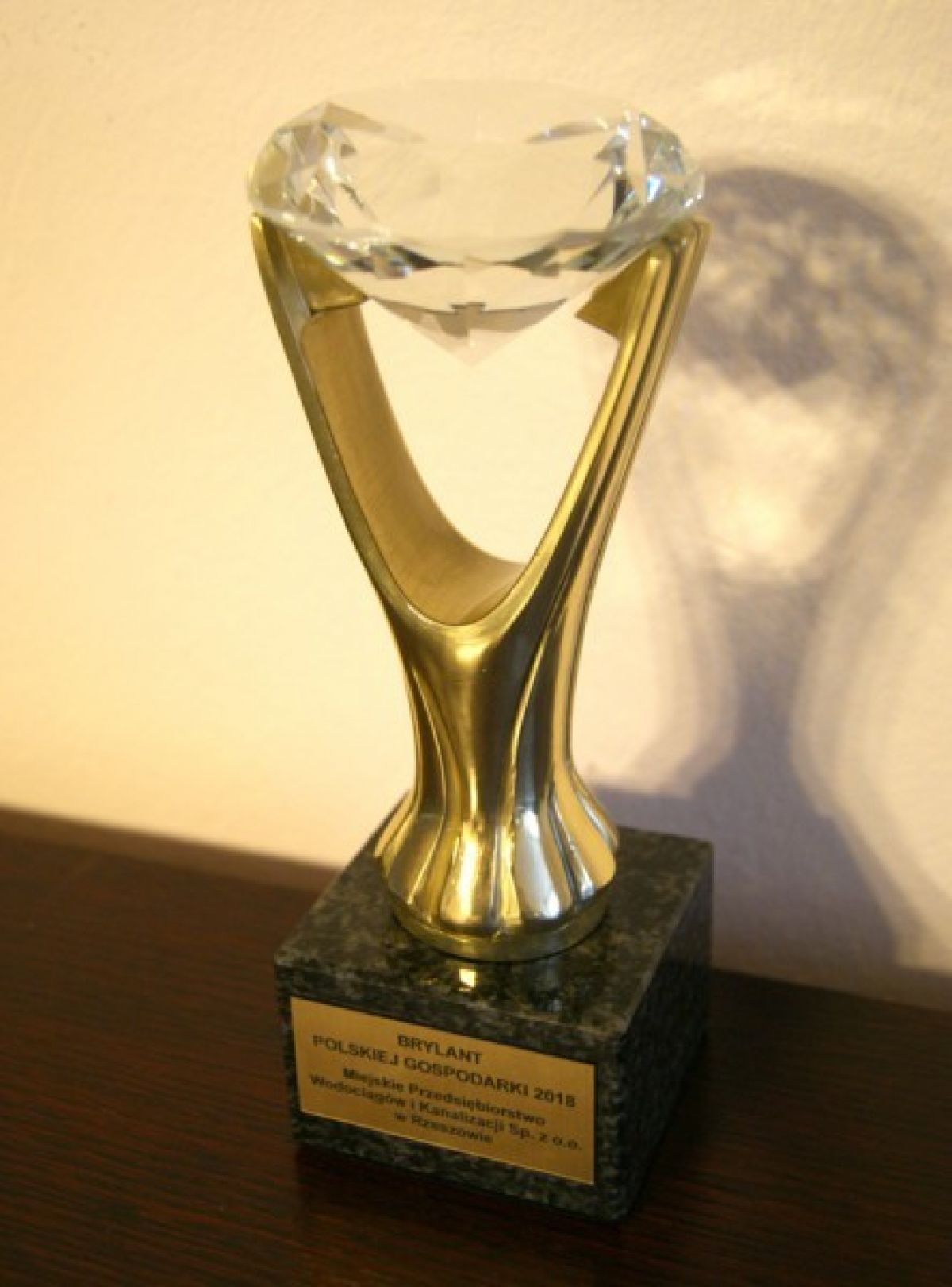 Miejskie Przedsiębiorstwo Wodociągów i Kanalizacji w Rzeszowie zdobyło tytuł Brylant Polskiej Gospodarki podczas VII Kongresu Nowoczesnej Gospodarki, który odbywał się w Warszawie 10 maja 2019 r.