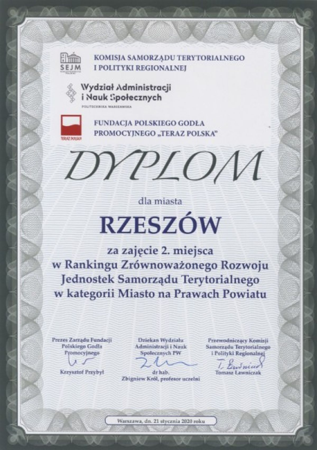 21 stycznia br. w Sali Kolumnowej Sejmu RP odbyła się konferencja „Zrównoważony rozwój społeczno-gospodarczy jednostek samorządu terytorialnego”, podczas której ogłoszono wyniki dorocznego Rankingu Zrównoważonego Rozwoju Jednostek Samorządu Terytorialnego.