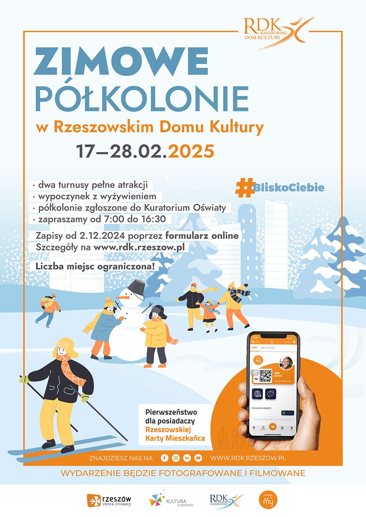 Półkolonie odbędą się w aż 13 filiach RDK, co daje każdemu rodzicowi możliwość wyboru najdogodniejszej lokalizacji. Zimowy wypoczynek został podzielony na dwa turnusy (I – od 17 do 21 lutego i II - od 24 do 28 lutego) i będzie organizowany w godzinach 7:00-16:30. Zapisy będą prowadzone od 2 grudnia (od godz. 17:00) do 13 grudnia (uzupełniające – w przypadku wolnych miejsc – od 15 do 24 stycznia 2025 r.) tylko przez formularz online, dostępny od momentu startu zapisów na profilu facebookowym oraz stronie internetowej Rzeszowskiego Domu Kultury.