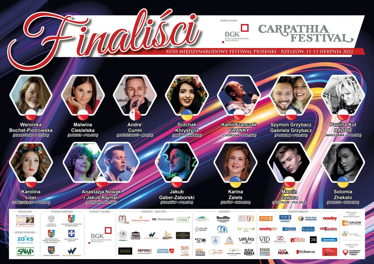 Finaliści XVIII Międzynarodowego Festiwalu Piosenki „Carpathia Festival” – Rzeszów 2022:
