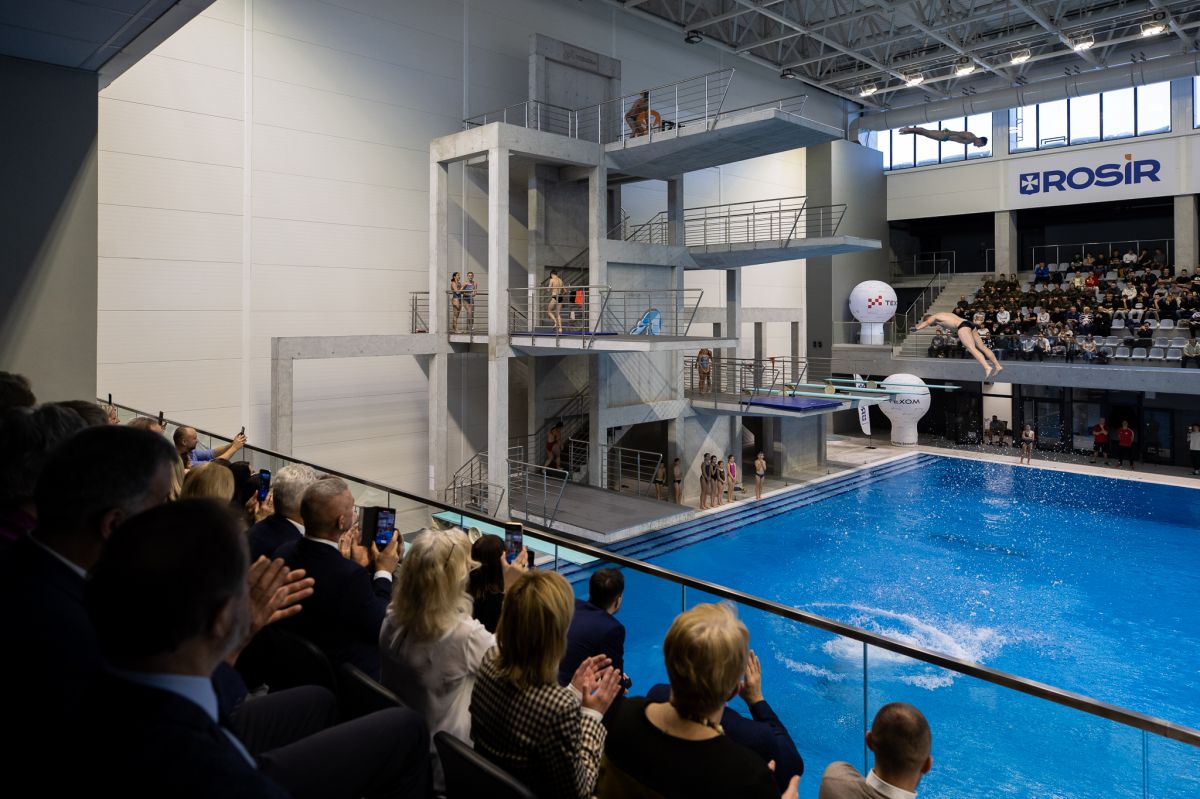 – Nie bez powodu w tym obiekcie mamy napisy „Rzeszów – Stolica Innowacji”. Ten obiekt, który dziś otwieramy, jest innowacyjny, jest jednym z najlepszych, jak nie najlepszym na naszym kontynencie. Jest wszechstronny. Skoki do wody będą tutaj podstawą, ale to miejsce jest przystosowane do powszechnej nauki pływania i innych sportów pływackich. Przypomnę, że pływanie jest trzecią najbardziej popularną dyscypliną sportu w Polsce. Zarząd Polskiego Związku Pływackiego będzie chciał w stu procentach tę pływalnię wykorzystać. Przed nami m.in. Europejskie Igrzyska Olimpijskie, podczas których będziecie państwo mogli tutaj podziwiać najlepszych zawodników Europy. Jestem dumna i szczęśliwa, że będziemy mogli tu kształtować i rozwijać obecne i nowe pokolenia skoczków do wody, dyscypliny, której Rzeszów jest kolebką – mówiła podczas uroczystości Otylia Jędrzejczak, prezes Polskiego Związku Pływackiego.